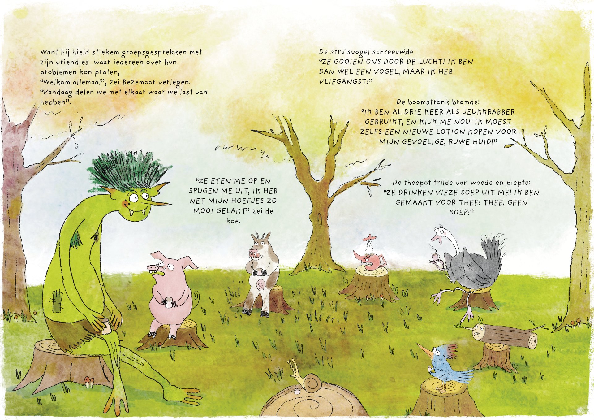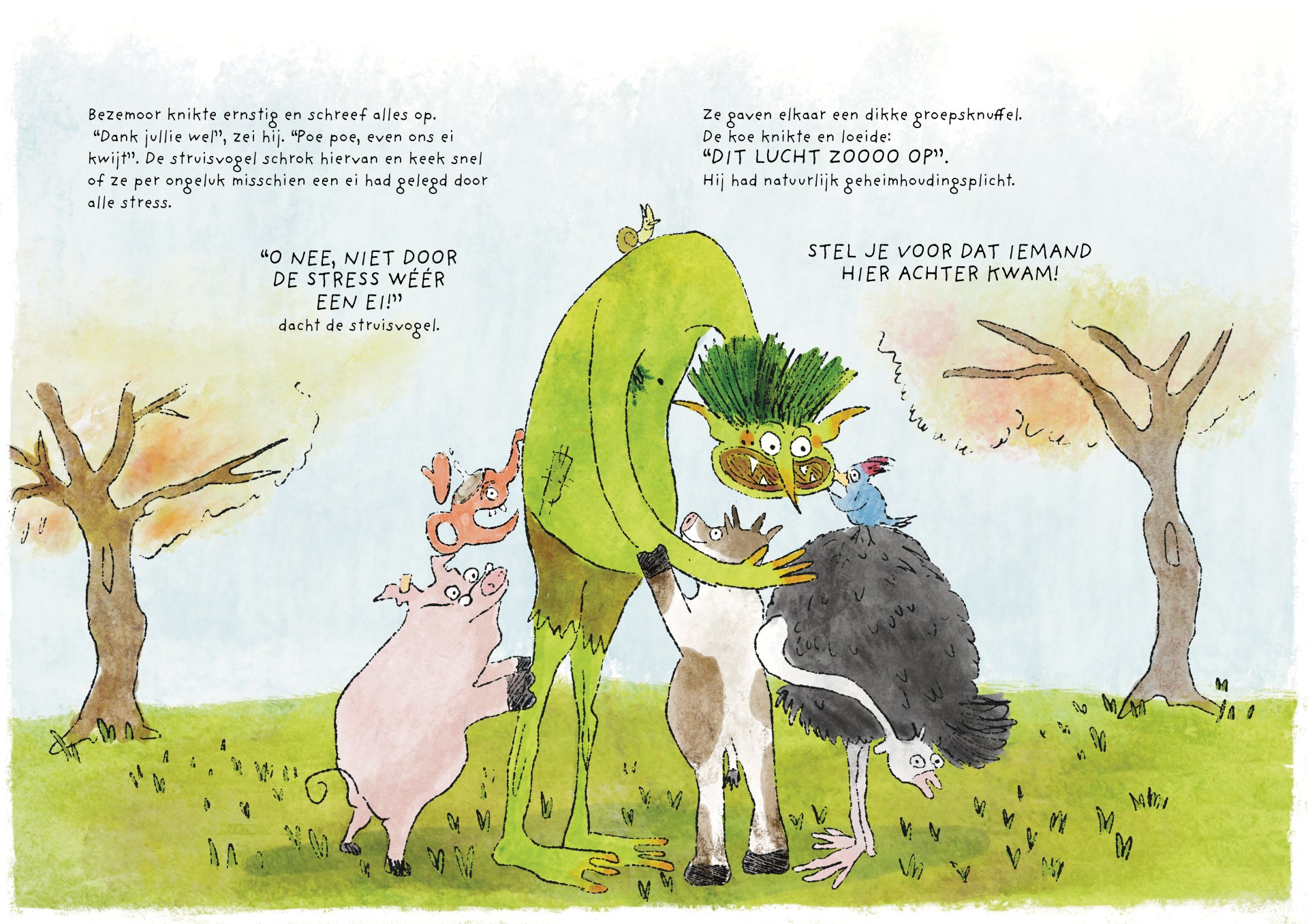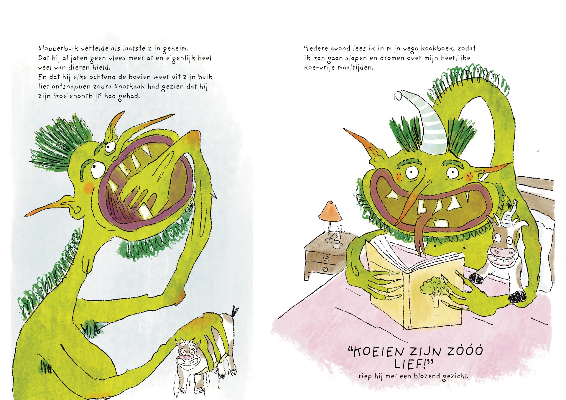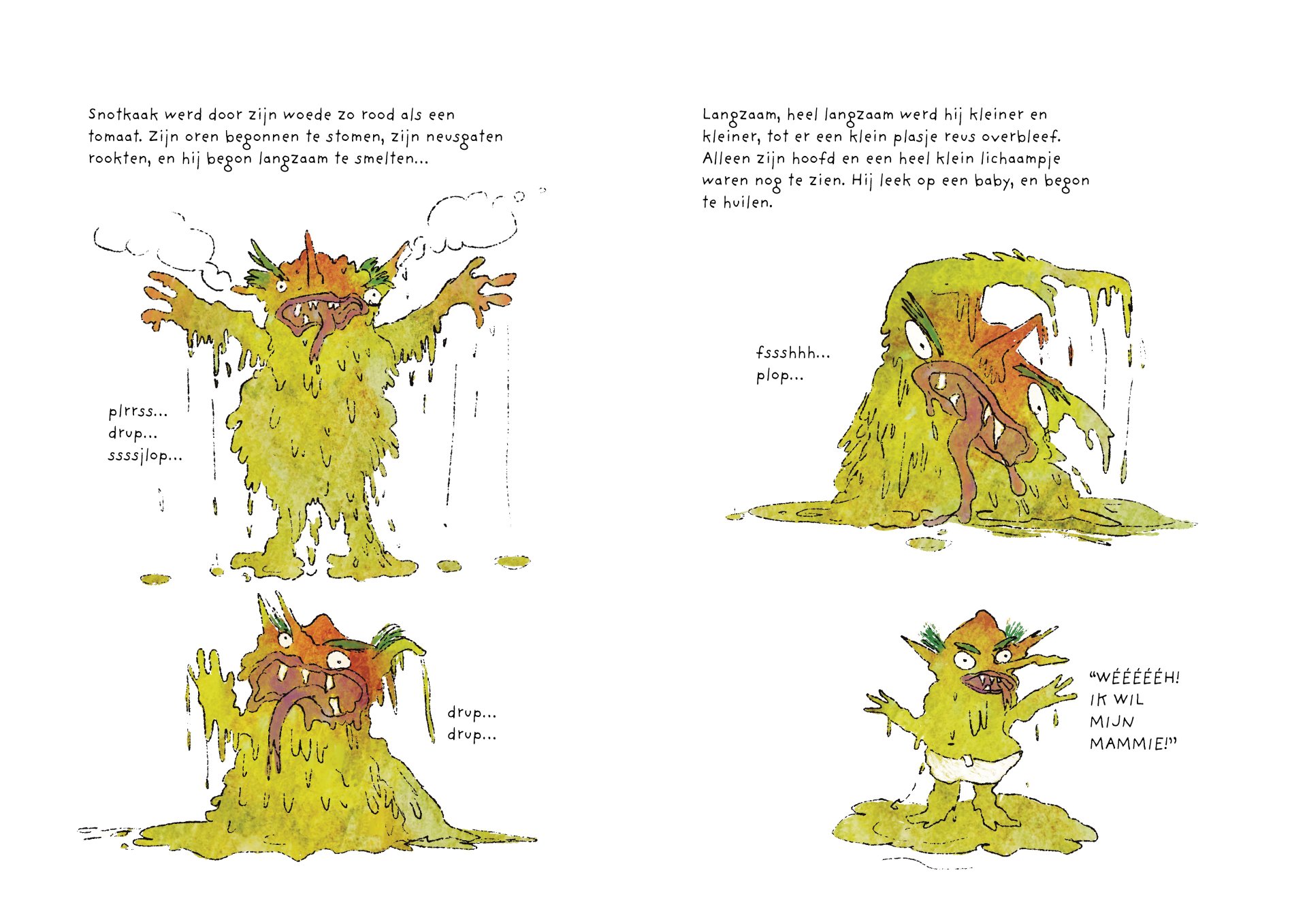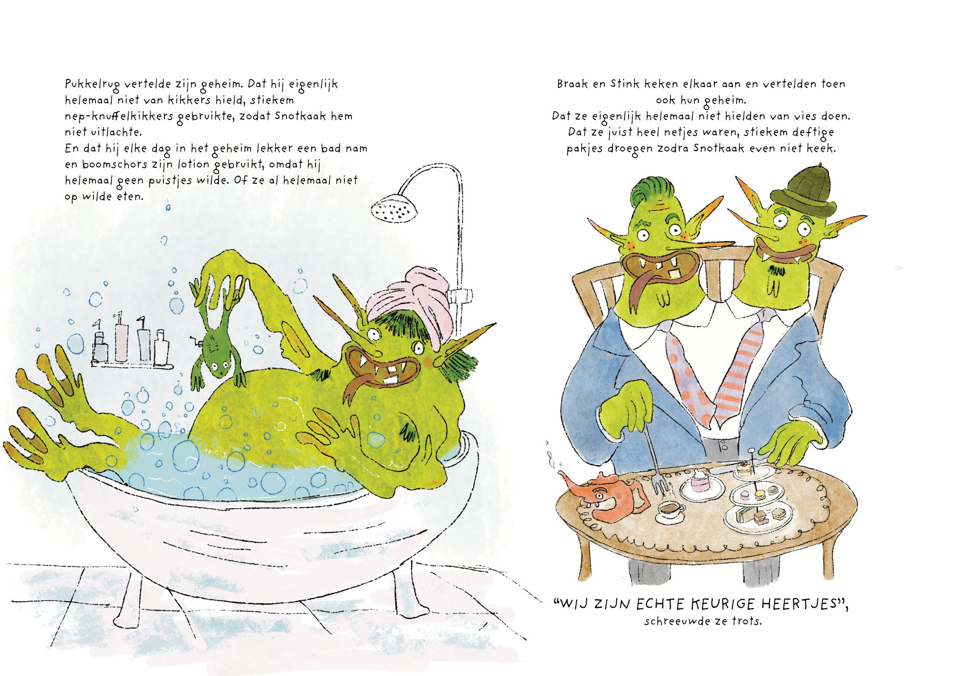 Tijdens mijn minor heb ik vier maanden gewerkt aan de ontwikkeling van het kinderboek De vieze reuzen – Een gigantisch geheim. Het verhaal volgt een groep vieze, luidruchtige reuzen die alles om zich heen vies maken, ruzie maken en zich stoer gedragen, maar ondertussen ieder hun eigen geheim met zich meedragen. Onder de humoristische en groteske oppervlakte behandelt het boek persoonlijke en kwetsbare thema’s. Het is gebaseerd op mijn eigen ervaringen met toxische mannelijkheid, het verlies van mijn vader aan alcoholisme op zesjarige leeftijd, en het opgroeien als een zachtaardig kind dat daarmee gepest werd. Dit project was voor mij een uitdaging om zowel mijn illustratie- als schrijfvaardigheden verder te ontwikkelen, en tegelijkertijd luchtigheid en humor in mijn werk te brengen.