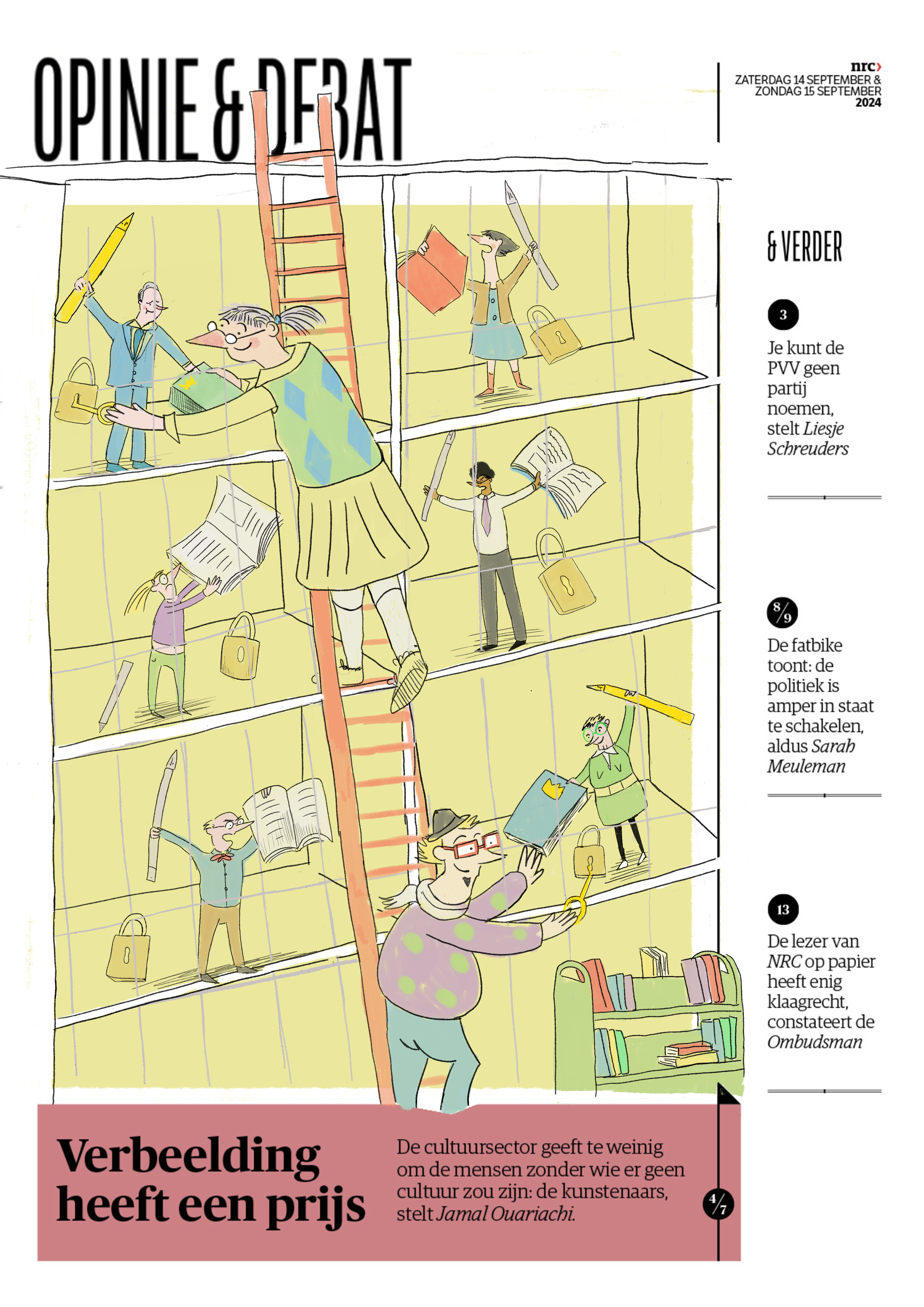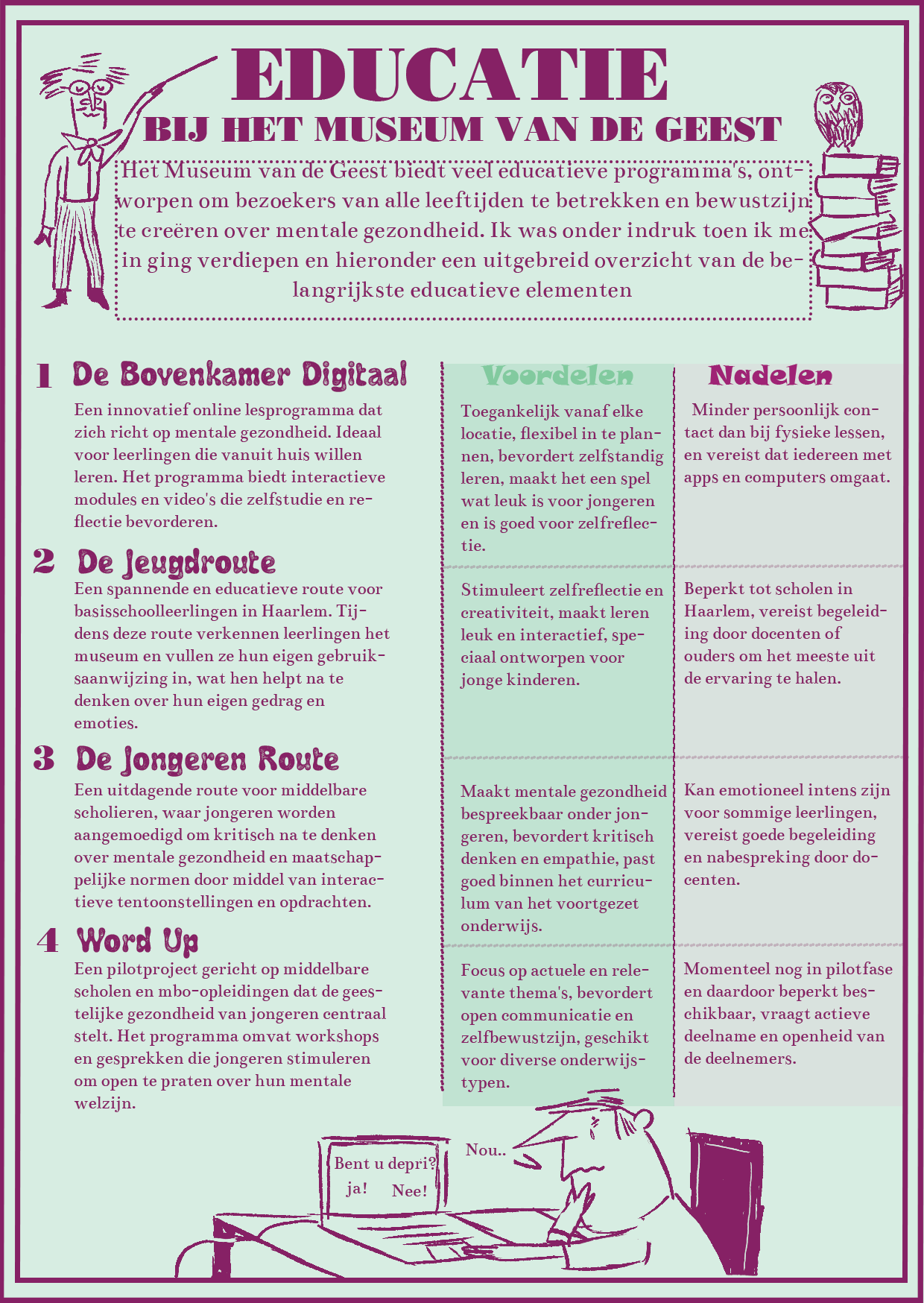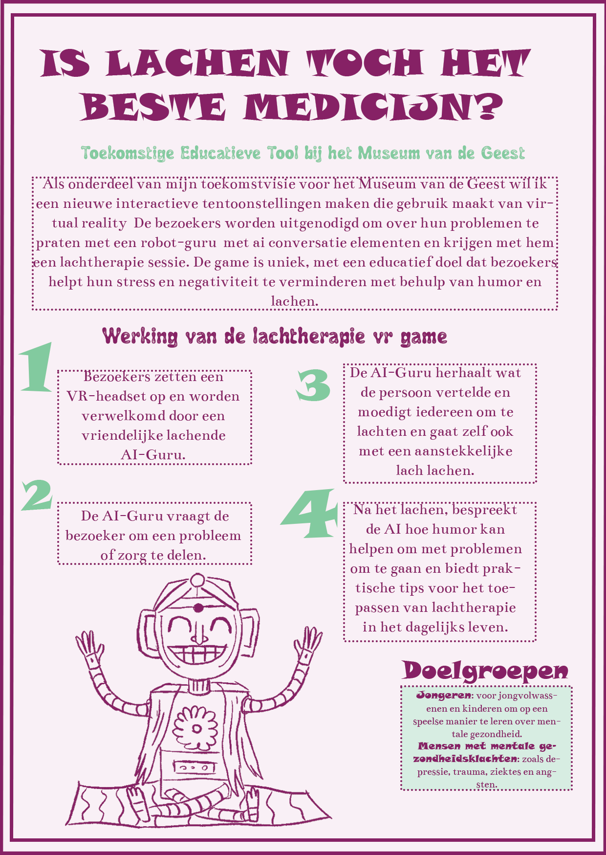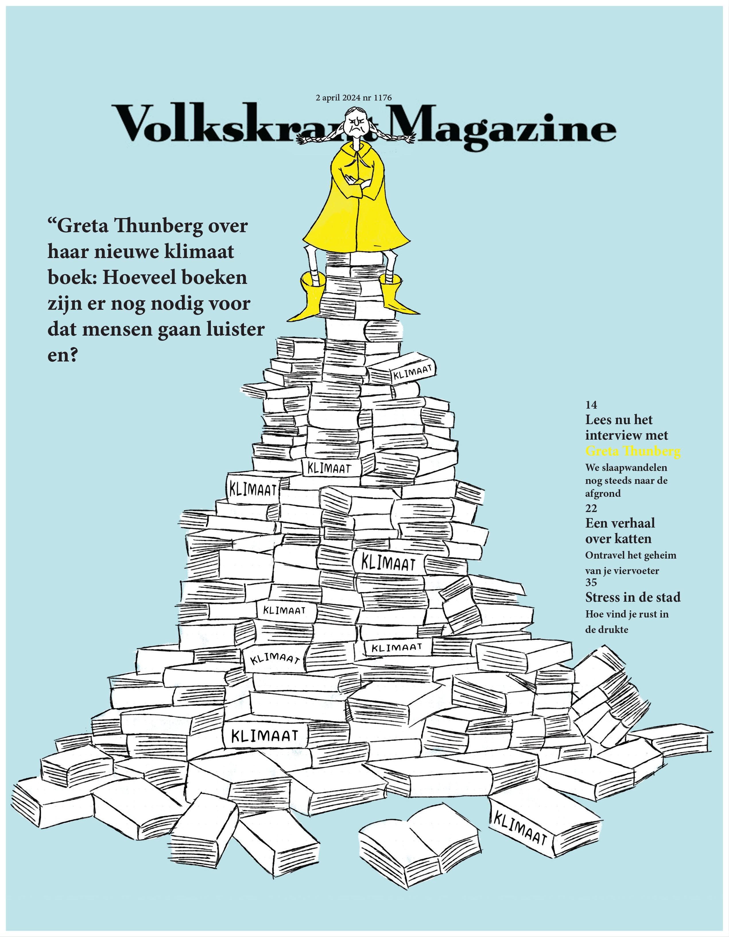 In jaar 1 van de kunstacademie hadden we, samen met het Beeld en Geluid museum, een redactioneel illustratieproject. We kregen een bestaande illustratie aangereikt, waarvan we een eigen variant moesten maken. Ik kreeg een illustratie van Harmen van Straatten. In mijn versie heb ik de schoorstenen en de schoonmaker veranderd in rijke babyboomer-zakenmannen die alles weglachen en slechte grappen maken, terwijl ze hun beloftes over milieubeleid niet nakomen. De schoonmaker heb ik veranderd in Gen Z, die het vuil van de babyboomers moet opruimen. Mijn illustratie werd uiteindelijk geselecteerd om in het museum getoond te worden.
